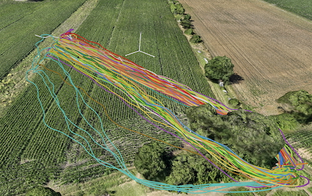 Figure: Drone-based tracking reveals idiosyncratic flight paths of individual honey bees navigating between hive and foraging locations with remarkable precision. (From Stentiford, Harrap et al. 2025.)